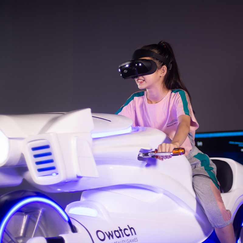 采用獨創(chuàng)的動作捕捉系統(tǒng),32英寸的無輪轂車輪、OLED光帶,結(jié)合時下最具科技感的虛擬現(xiàn)實技術(shù),超強的爆發(fā)力和性能帶來史無前例的變駛體驗.結(jié)合自主設(shè)計的游戲內(nèi)容,光影摩托車直正將視覺, 聽覺和動感完美地為一體。玩家身臨其境地感受前所未有的驚奇刺激
