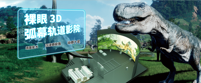 裸眼3D弧幕軌道影院采用了環球影城和迪士尼主要應用的環幕技術,具有浸入式裸眼3D效果,是目前全球領先的特種電影技術,在國內非常少見。我們不僅高品質完美呈現了這項技術,而且創造性的小型化以適應所有的室內場所,同時把成本降到可承受的范圍內,能夠廣泛普及這項游樂應用,影片播放時,飛行動感平臺配合影片做出俯沖,搖晃等動作,提供真實刺激的飛行體驗。屏幕上的超長跨度的廣闊畫面充滿觀賞者的視野,全方位立體聲與影片情節相輔相成、完美配合,演繹精彩絕倫的沉浸式視聽享受。
